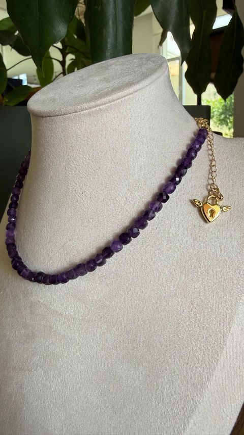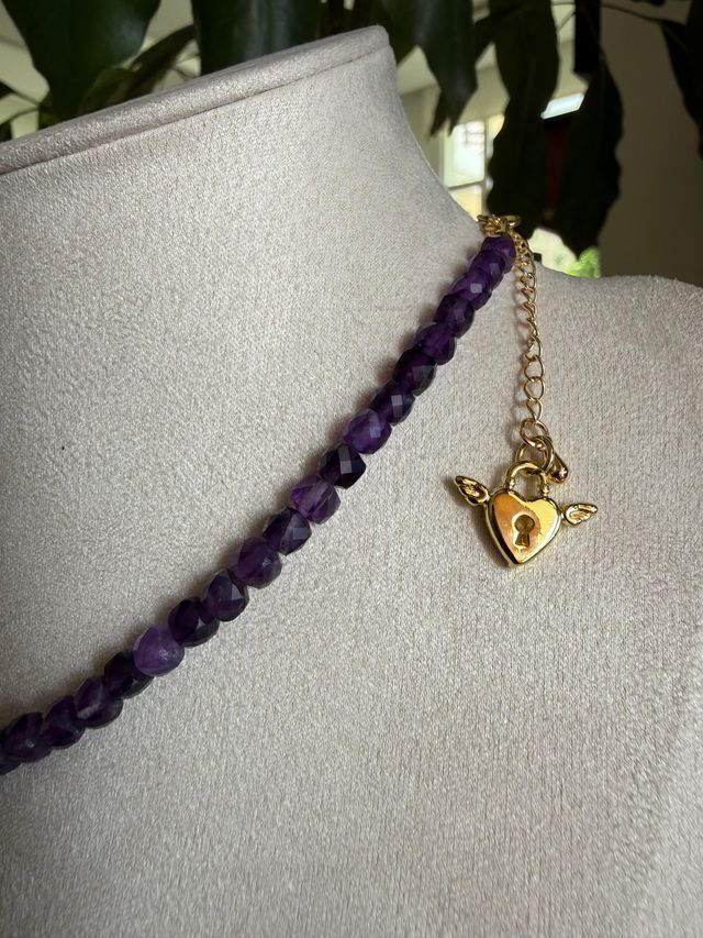 DETALLE: Choker de 35 cm de diámetro. Piedra: Amatista. Material de cadena y dije en goldfield.