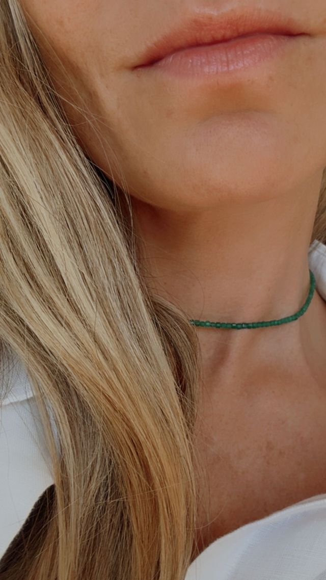 DETALLE: Choker de 35 cm. Piedra: jade. Material de cadena y dije en goldfield.